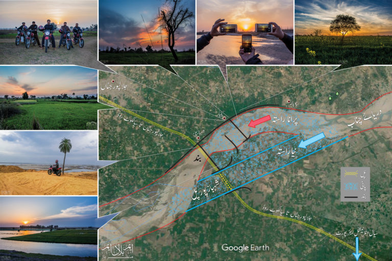 کئی مقامی لوگوں کو اس سارے منصوبے کی سمجھ نہیں آتی کہ کیا اوٹ پٹانگ بن رہا ہے۔ کیونکہ آٹھ دس کلومیٹر کے علاقے میں کئی عجیب و غریب بند بن رہے ہیں۔ خیر لوگوں کی آسانی کے لئے یہ تصویر بنائی ہے۔ تصویر میں نقشہ بنا کر دریا کے نئے راستے اور پل کا بتایا ہے۔ مزید فی الحال جہاں جہاں تک پانی پھیل چکا ہے اس کی نشاندہی بھی کی ہے۔ چونکہ ہم انہیں علاقوں میں گھومتے اور فوٹوگرافی بھی کرتے رہتے ہیں تو لگے ہاتھوں جو جو تصویر جس جس جگہ بنائی تھی، تصویر کے ساتھ اس جگہ کی نشاندہی بھی کی ہے۔