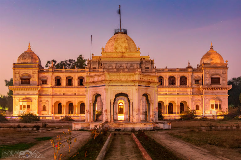 شفق ماند پڑ چکی تھی اور چوتھی کے چاند کی روشنی کم ہی ہوتی ہے۔ لہٰذا کیمرے کی آنکھ اپنی مکمل پتلی(اپرچر) کھول کر اور ایک جگہ ساکت رہ کر زیادہ دیر (لانگ شٹر سے) محل کو گھورتی تو کام بنتا۔ بس پھر سیٹنگز کیں اور شٹر دبا دیا۔ اور کام بن گیا۔۔۔ لیکن ٹھہریئے! جو کام مجھے چاہیئے تھا، اس کے لئے ابھی بڑے پاپڑ بیلنے تھے۔ کیونکہ مجھے محل تھوڑا مختلف انداز سے روشن چاہیئے تھا۔ اس دوران فرید پتہ نہیں کہاں چلا گیا اور دور سے چوکیدار کی ہلکی سی آواز آئی کہ آ جا بھئی آ جا۔ میں نے تالا لگانا ہے۔ ”آیا بس دو منٹ میں آیا“۔۔۔ خیر اب کی بار تھوڑا زیادہ ”لانگ ایکسپوژر“ لگایا اور کیمرے کو ادھر ہی چھوڑ کر خود عمارت کی طرف چل دیا۔ قریب جا کر موبائل کی ٹارچ سے محل پر روشنی پھینکنے لگا۔ دل میں خدشہ بھی تھا کہ پیچھے سے کوئی کیمرہ ہی اٹھا کر نہ لے جائے۔ یا پھر کوئی جانور کہیں سے آ گیا تو کیمرے کو گرا نہ دے۔ اور اگر نواب صاحب کی روح آ گئی تو یقیناً لِتر مارے گی کہ کون اس وقت محل میں اچھل کود کر کے ان کی تنہائیوں میں خلل ڈال رہا ہے۔ لہٰذا میں جلد ہی واپس کیمرے کے پاس پہنچ گیا۔۔۔ ابھی یہ سوچ ہی رہا تھا کہ اتنا بڑا محل کیسے روشن کیا جائے؟ تو اتنے میں فرید بھی آ گیا۔ اسے کہا کہ یار فرید! محل کو روشن کرنے کا کوئی بندوبست کر۔ ”ٹھہر جا، ٹھہر جا۔ فکر نہ کر، اُس نے سارے بندوبست کر رکھے ہیں“۔۔۔